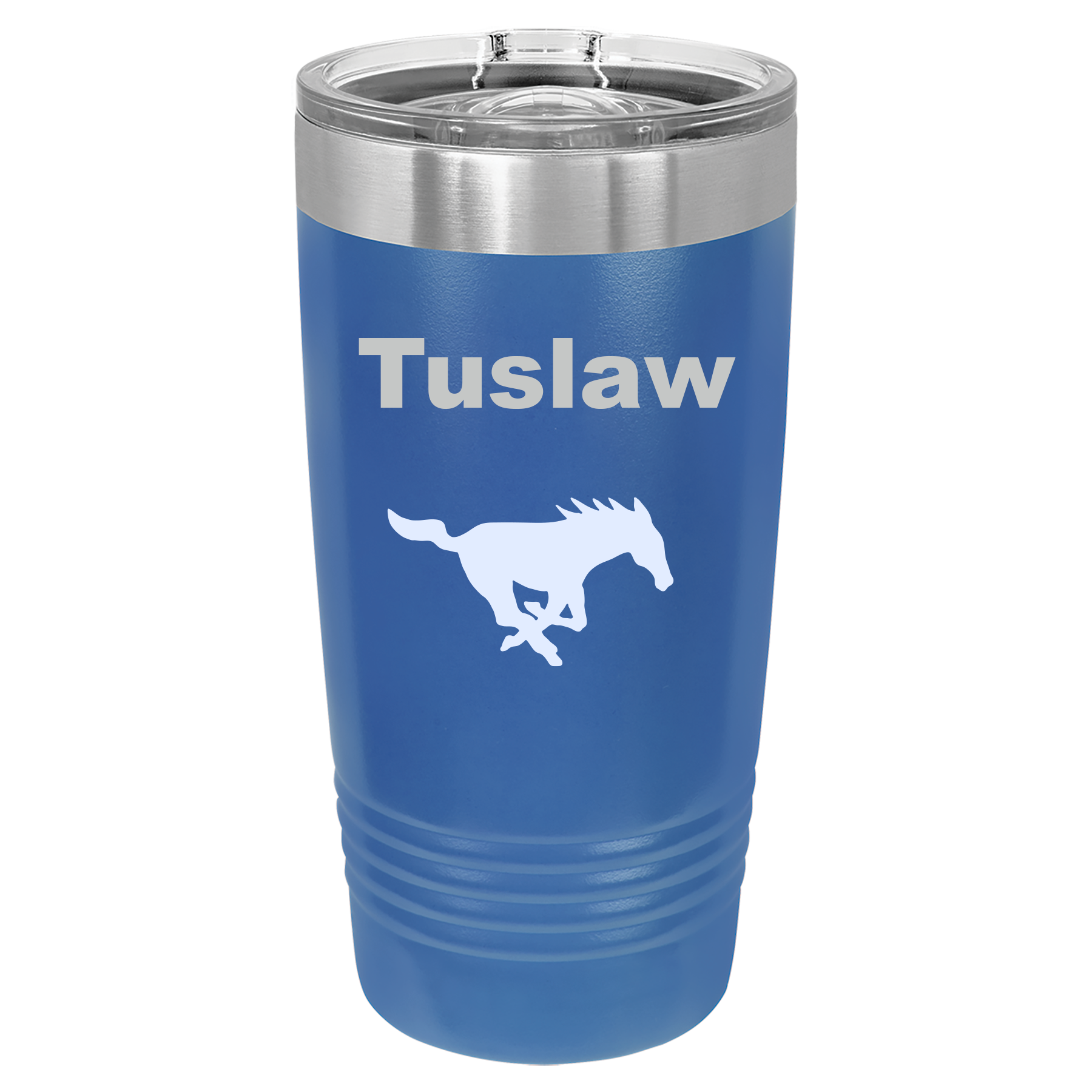 Get this great Polar Camel Stainless Steel Travel Mug and show off your school pride. This 20oz, Royal Blue Stainless Steel travel mug is custom engraved with the Tuslaw Mustang on the side.